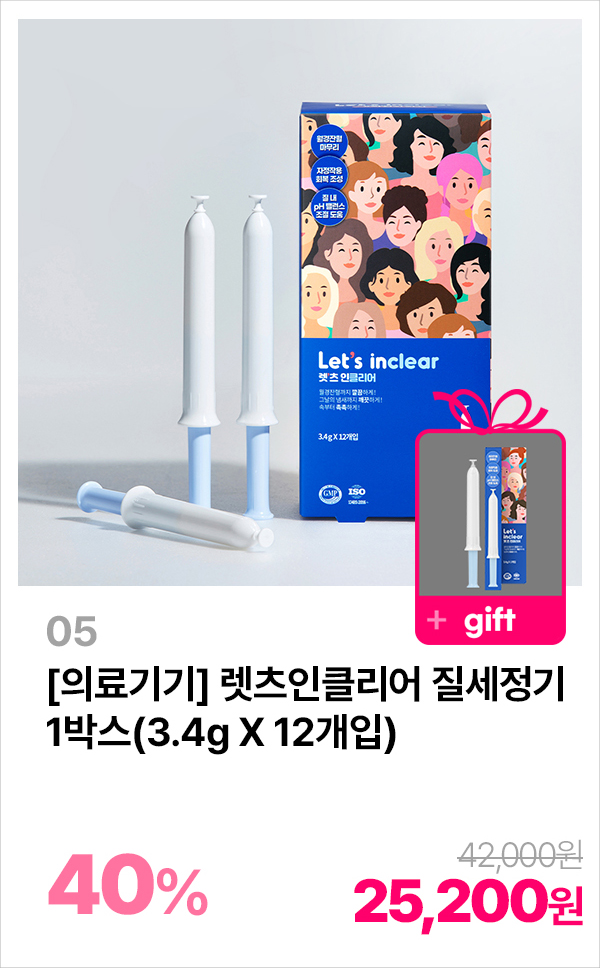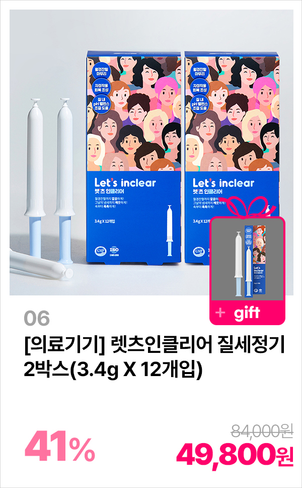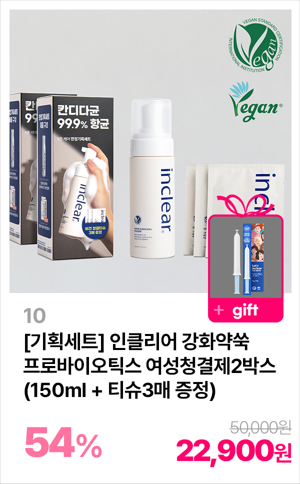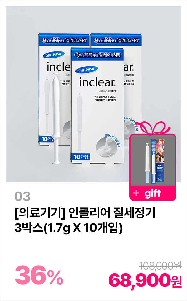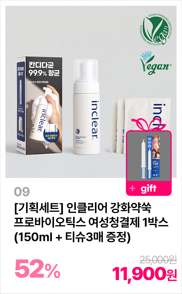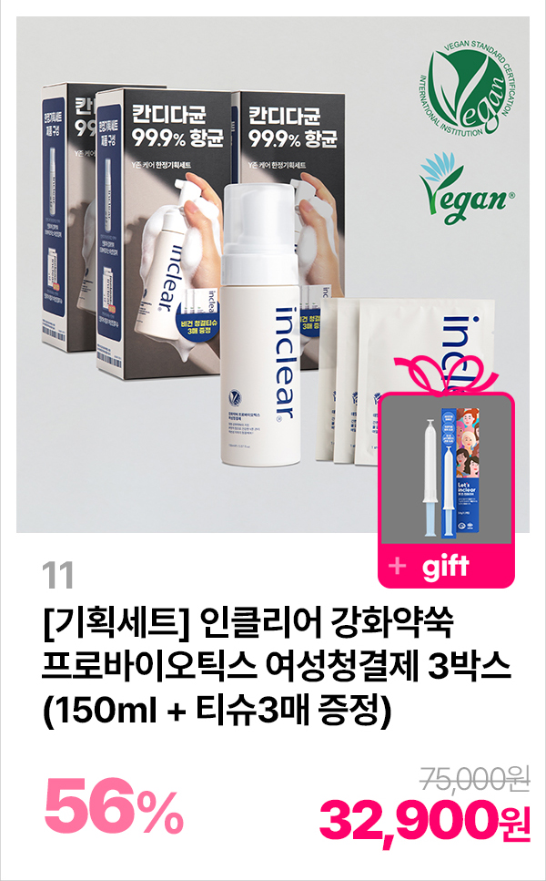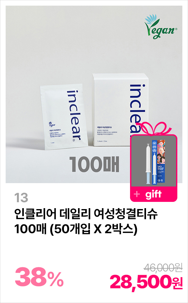 【인클리어 강화약쑥 프로바이오틱스 여성청결제】 정제수, 글리세린, 다이소듐코코암포다이아세테이트, 솔비톨, 코코-베타인, 부틸렌글라이콜, 1,2-헥산다이올, 소듐클로라이드, 락토바실러스발효용해물(6,000ppm), 비피다발효용해물(3,000ppm), C12-13파레스-9, 에틸헥실글리세린, 하이드로제네이티드레시틴, 시어버터, 쑥잎추출물(150ppm), 오레가노잎추출물, 박하추출물, 편백잎추출물, 하이드롤라이즈드하이알루로닉애씨드, 하이알루로닉애씨드, 하이드롤라이즈드소듐하이알루로네이트, 소듐하이알루로네이트, 포타슘하이알루로네이트, 소듐하이알루로네이트크로스폴리머, 하이드록시프로필트라이모늄하이알루로네이트, 세라마이드엔피, 소듐아세틸레이티드하이알루로네이트, 스피드웰꽃/잎/줄기추출물, 레몬밤잎추출물, 당아욱꽃/잎/줄기추출물, 서양톱풀추출물, 레이디스맨틀추출물, 황산앵초추출물, 페퍼민트잎추출물, 피록톤올아민, 시트릭애씨드 【(증정품)인클리어 데일리 여성청결티슈】 정제수, 1,2-헥산다이올, 글리세린, 알지닌, 시트릭애씨드, 에틸헥실글리세린, c12-14알케스-12, 알란토인, 폴리글리세릴-6카프릴레이트, 폴리글리세릴-4카프레이트, 다이소듐이디티에이, 부틸렌글라이콜, 코코넛야자열매추출물 |